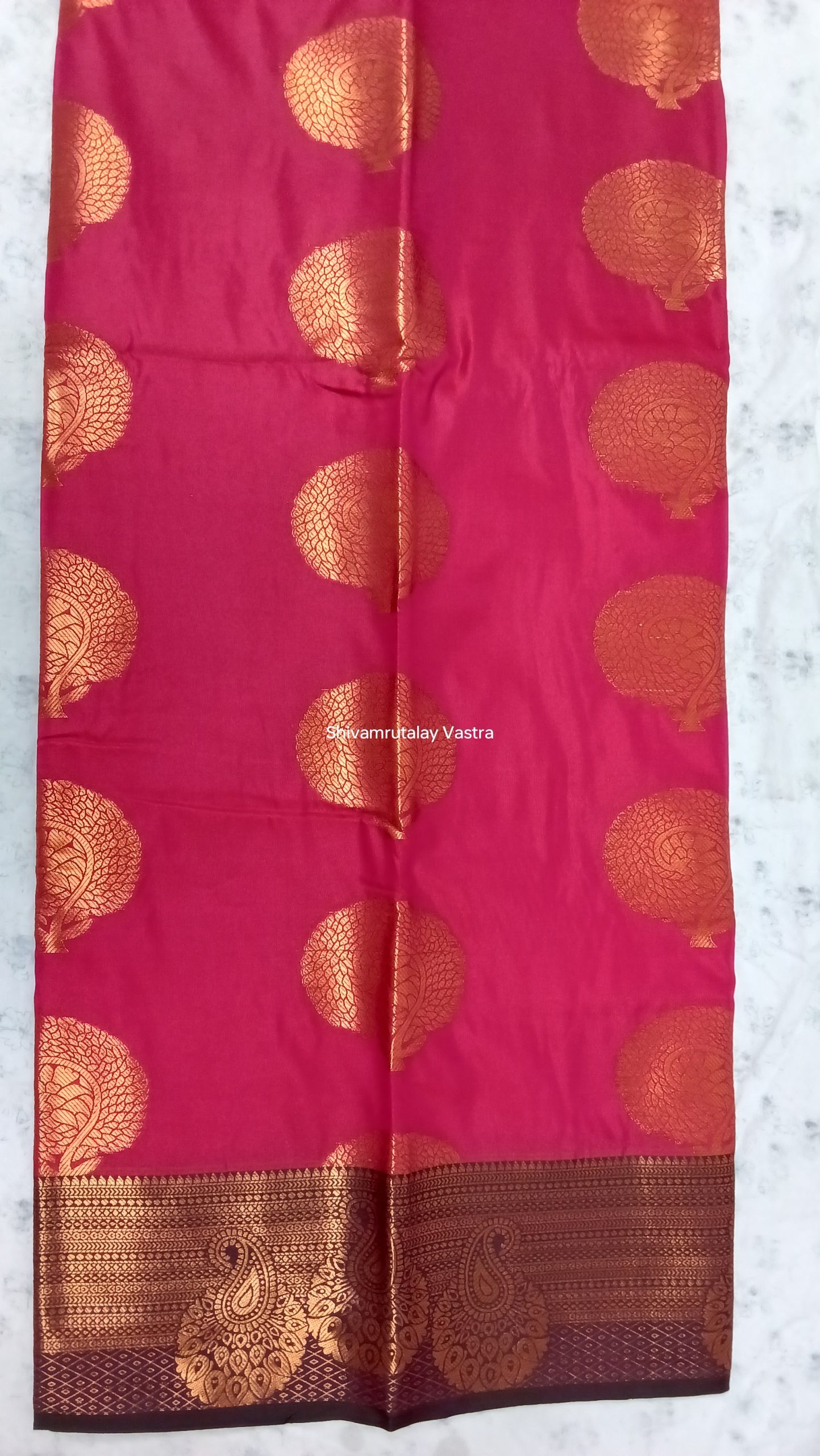 Do NOT soak/brush/ wash in washing machine/ twist the saree to drain water.