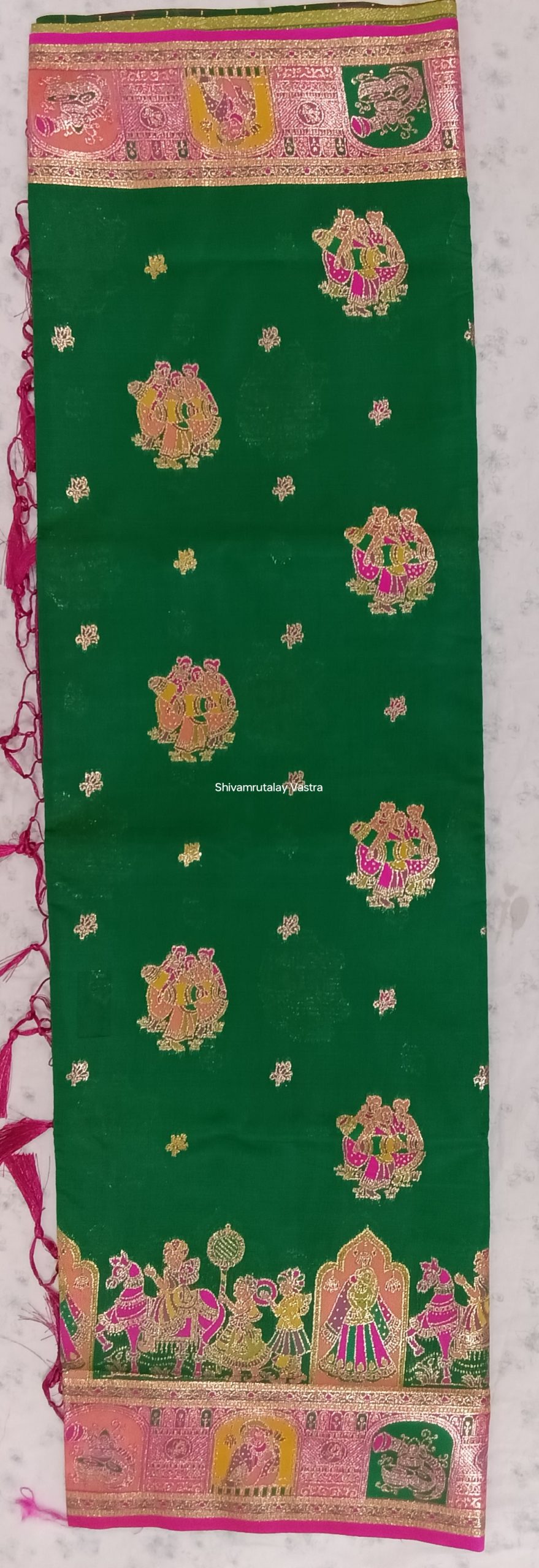 Do NOT soak/brush/ wash in washing machine/ twist the saree to drain water.