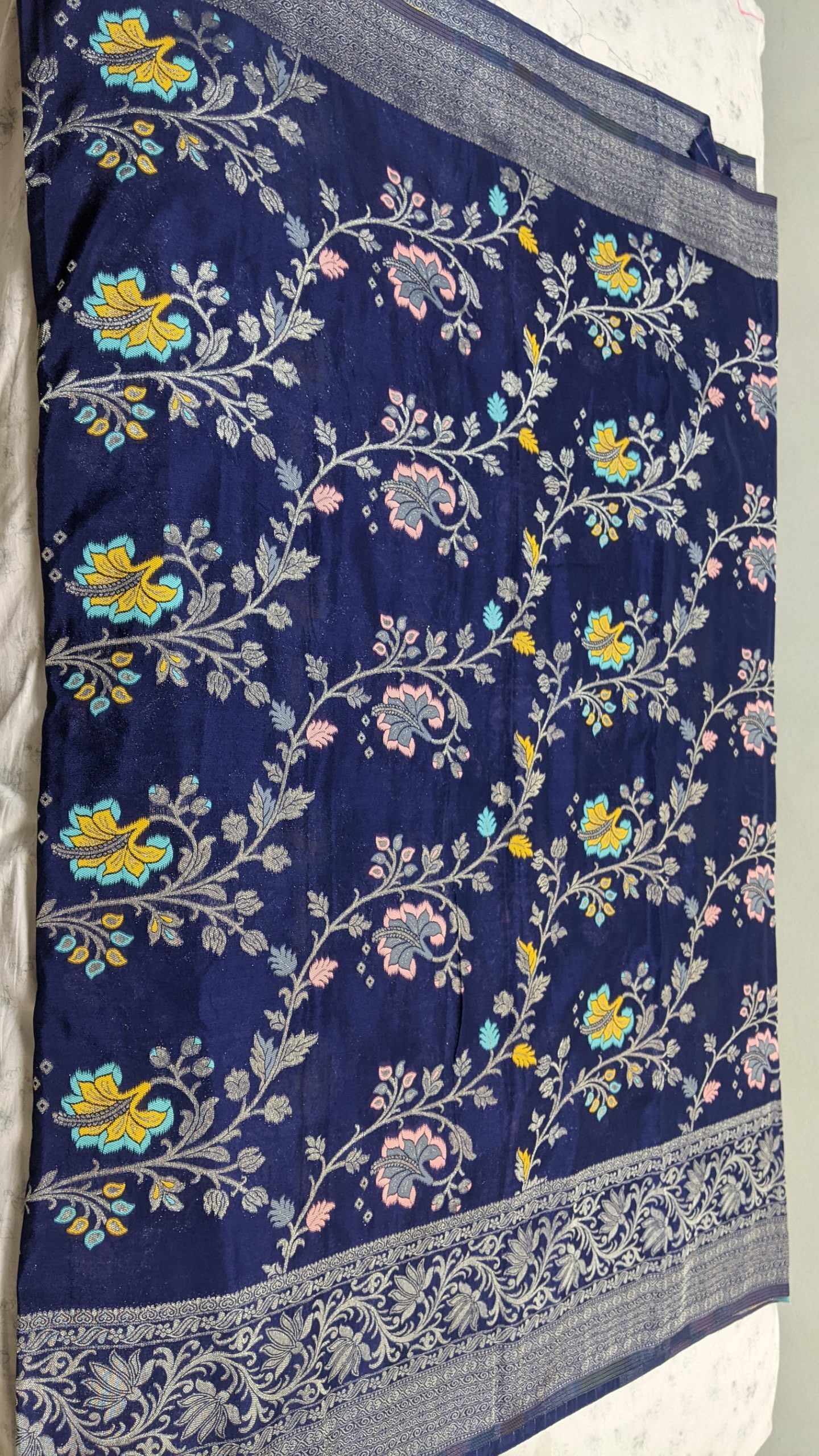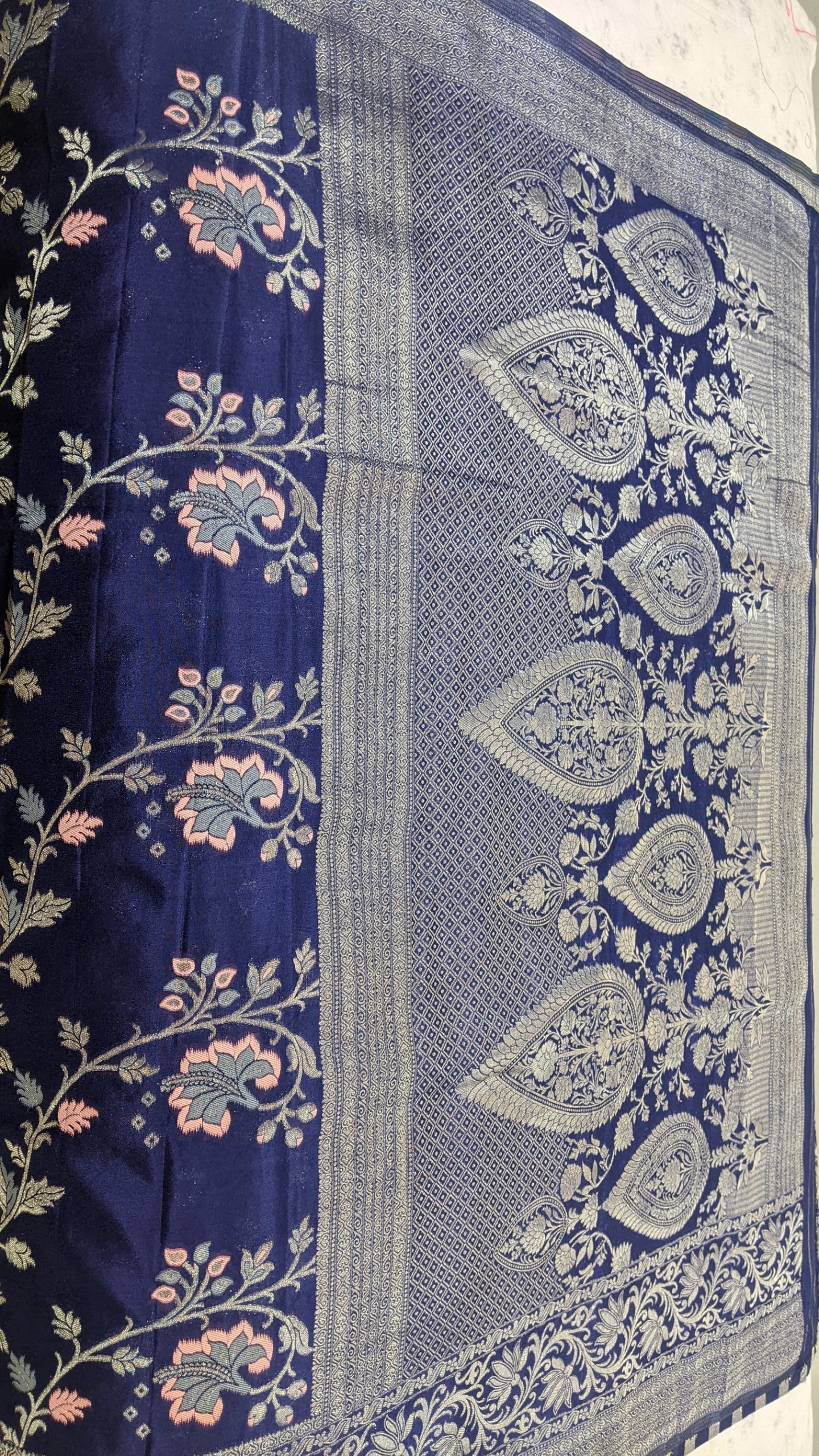 Zari jaal pattern with meenakari and rich pallu.