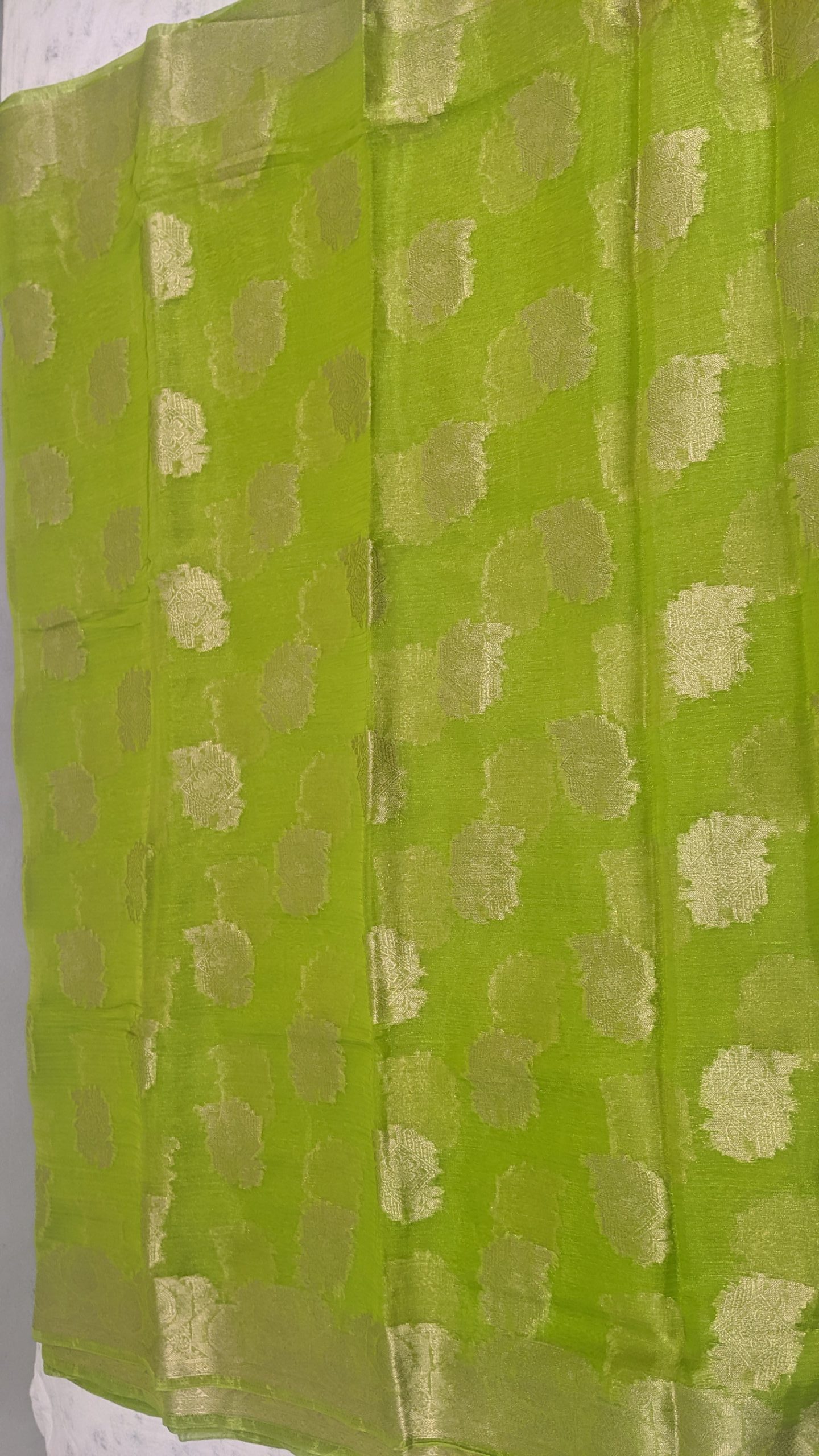 Do NOT soak/brush/ wash in washing machine/ twist the saree to remove water.