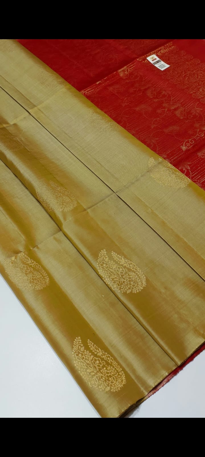 Colour : golden Beige with contrast Red pallu