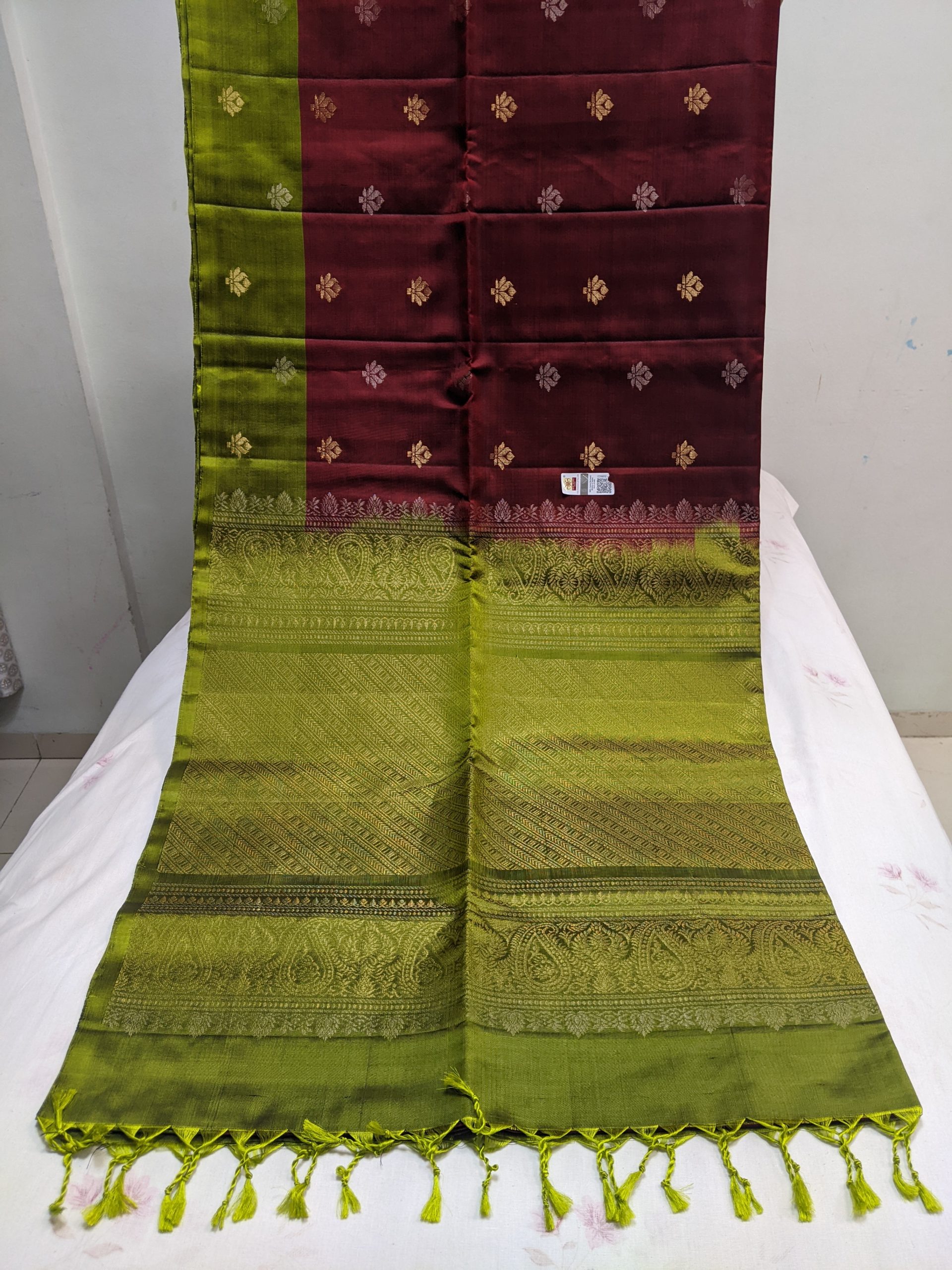 Colour : Maroon with contrast Green pallu